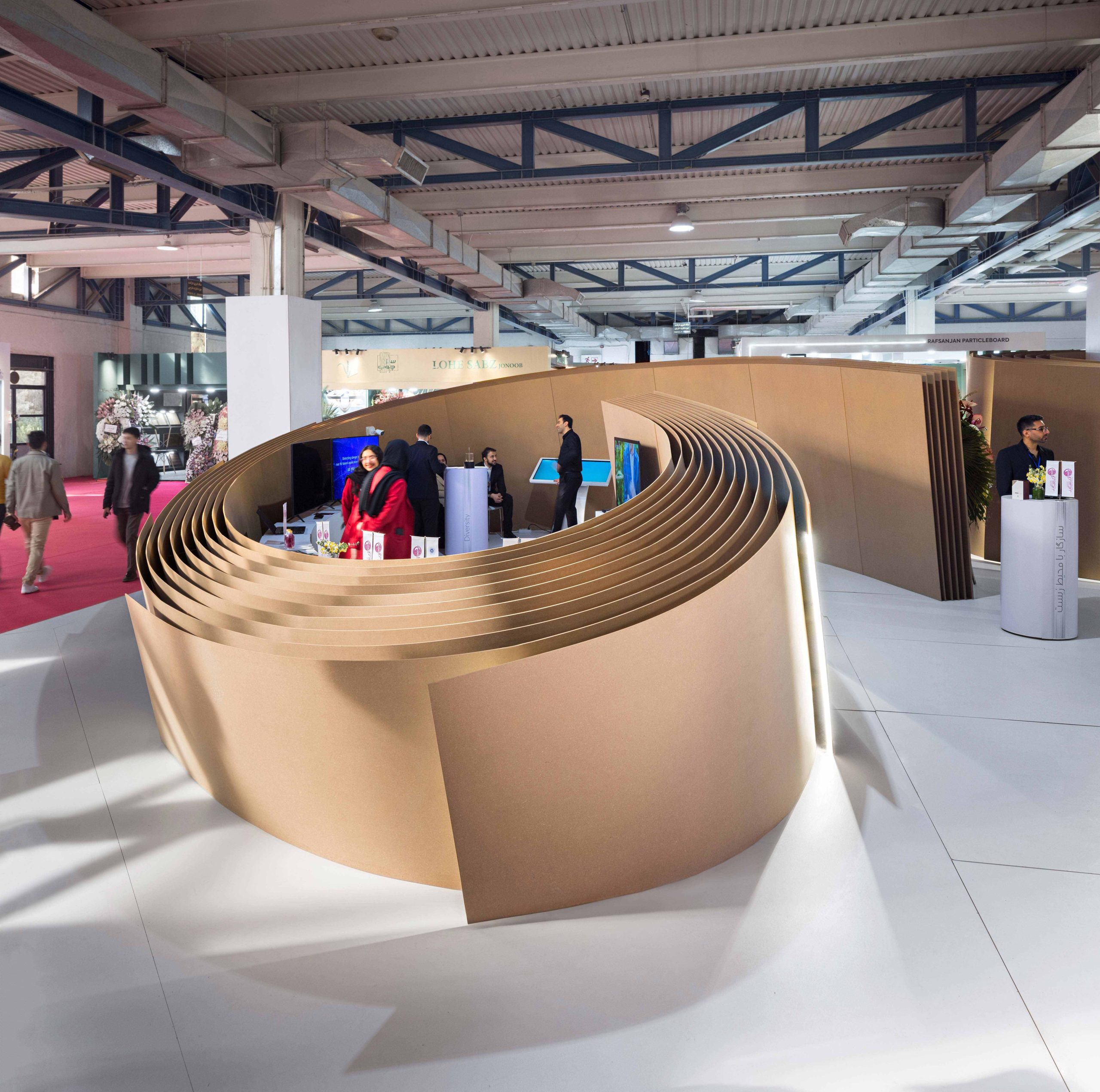 Arian Saeed pavilion 2025, marks the seventh iteration in a series of experimental projects developed in collaboration with Arian Saeed Industrial Group. Since 2015, this partnership has explored the spatial and structural potential of engineered wood. As one of the largest manufacturers of engineered wood in the Middle East, Arian Saeed Industrial Group initially commissioned MARZ to redefine its brand identity, leading to the development of temporary structures that, alongside their new visual branding, showcase innovation and expanded material possibilities.